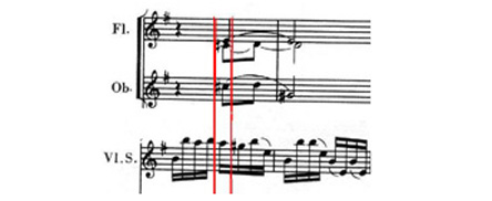 در میزان ۷۷ باز تکرار فیگور هارمونیک قبلی را اینبار با تغییر نقش ابوا به کلارینت می شنویم.